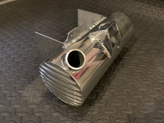 This oval oil tank was used by Cyril Huze for one of his builds. Our oval oil tanks are fabricated from 6061-T6 aluminum and are Built by Fausto.