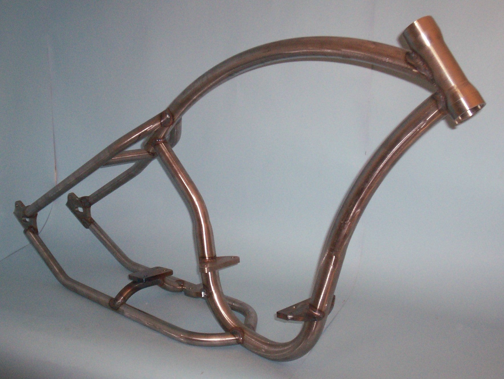 This MotoXcycle MXC custom board track racer frame features a single loop style construction to emulate the frames from the board track racing era. Available for rear tires sizes ranging from 130mm to 200mm. For Harley-Davidson Evolution motors as well and the iconic shovel head and panhead motors.