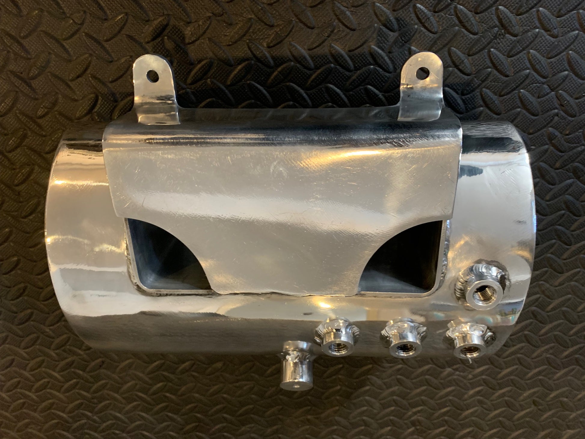 MotoXcycle MXC Oval Oil Tank with CNC machined Iron Cross on each side, for Harley-Davidson Softails 1999 and under or 2000 and up, also available for custom applications. Tanks are 12.25" wide for stock Harley-Davidson Softail applications. Tanks come with a brush finish. Polished and painted options are available. Wider tanks can be ordered as a custom order. contact us at sales@motoxcycle.com for more information.